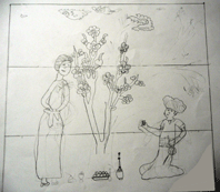 Panneau mural en céramique Concours poétique, Iran, XVIIe siècle