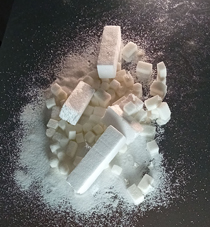 De la même façon , avec du sucre en morceaux ou en poudre, nous avons construit un paysage qui pourrait être glaciaire. |