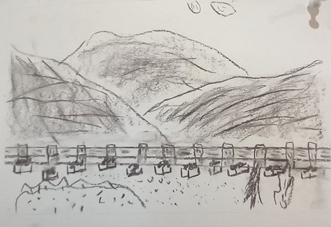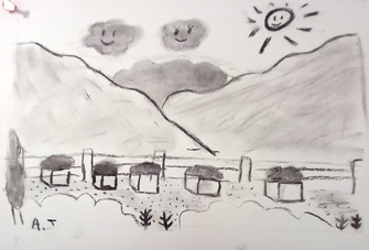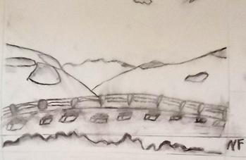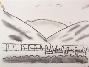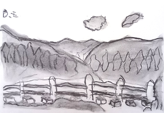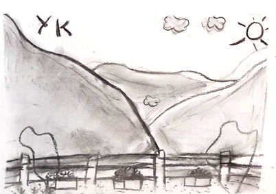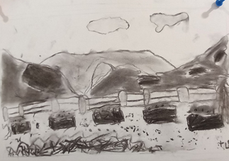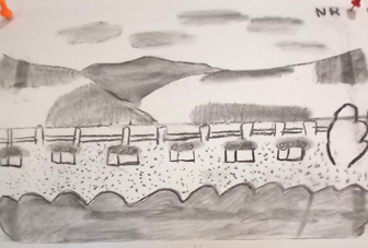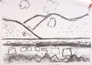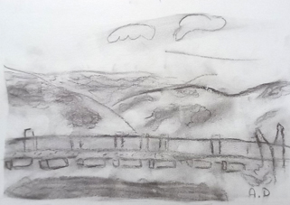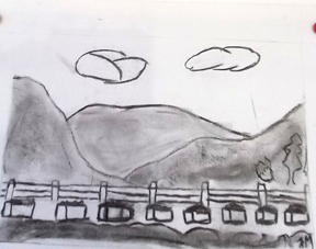 On fait le dessin au fusain, puis des ombres en frottant doucement avec le doigt ou un coton.